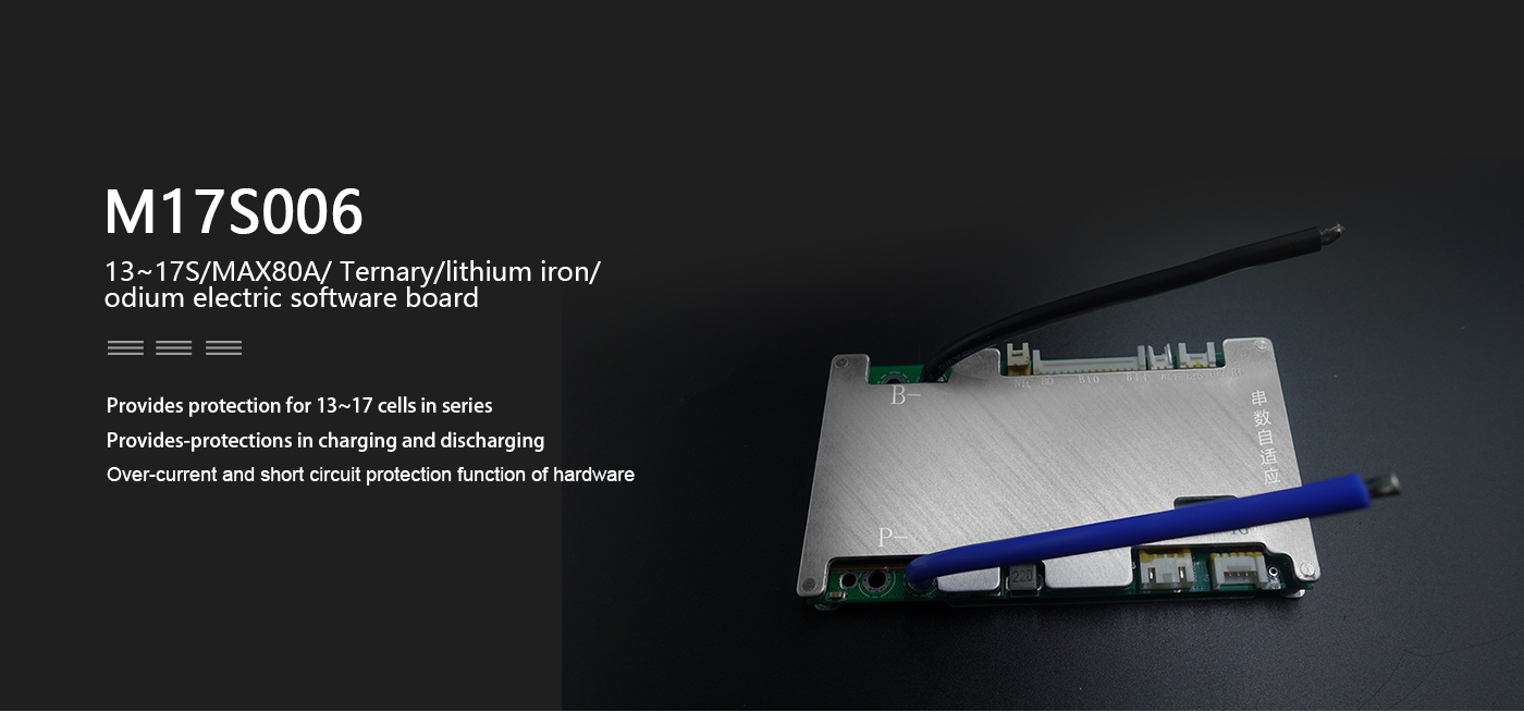 BP-M17S006 is a protection board solution designed by our company for 13~17 battery packs of power batteries; it can be used for lithium batteries of different chemical properties, such as lithium ion, lithium polymer, lithium iron phosphate, etc. This protection board has a strong load capacity and the maximum continuous current can reach 80A.
